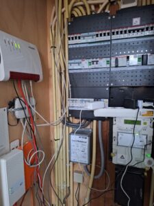Hier als voorbeeld een meterkast van een van onze leden. In de laatste jaren is toegevoegd: